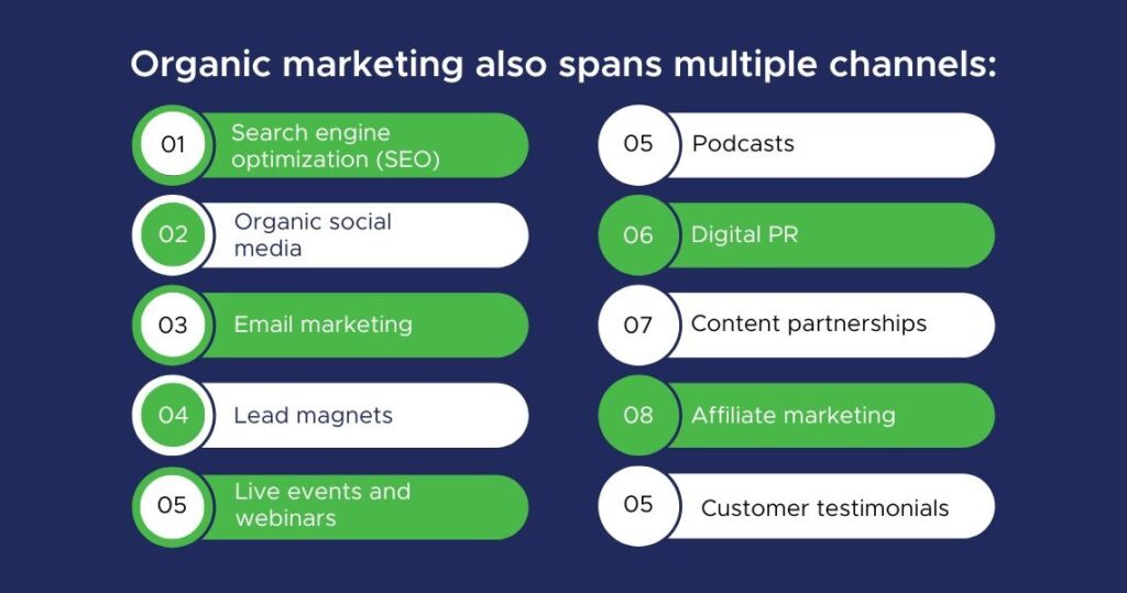 Organic marketing also spans multiple channels: